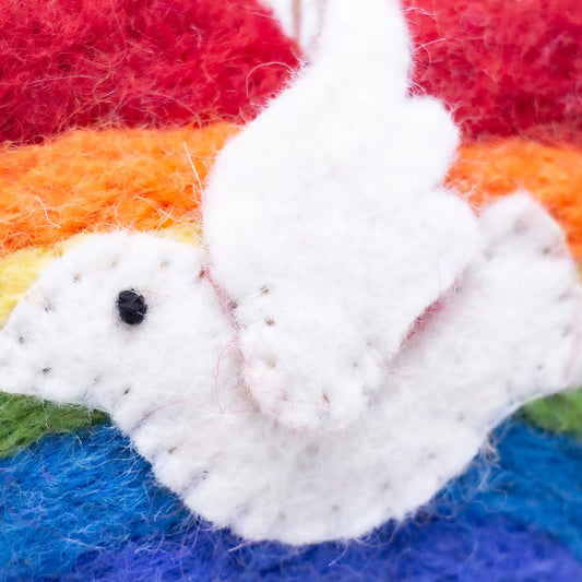 Rainbow Heart Dove Handmade Felt Ornament, Nepal