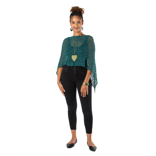 Short Popcorn Knit Poncho - Jade Green, Bali