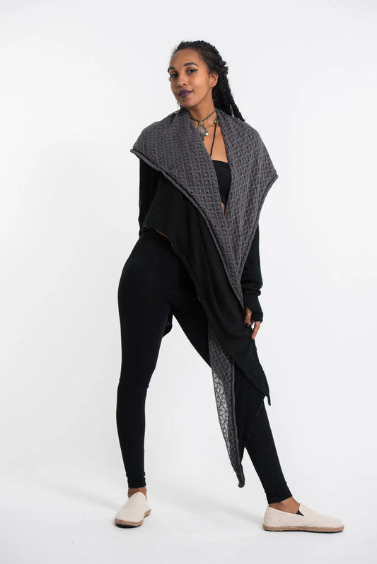 Short Popcorn Knit Poncho - Claret Red, Bali