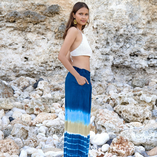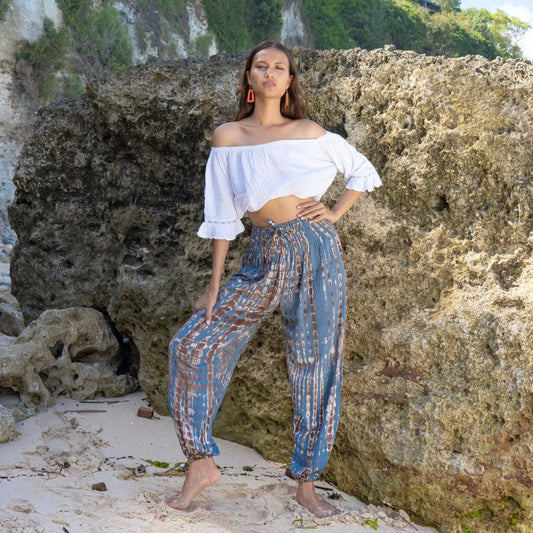 Bali Pants In Tan & Grey Tie Dye, Indonesia
