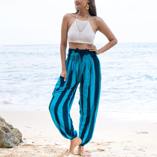 Bold Abstract Tie Dye Bali Pant In Teal & Black, Indonesia