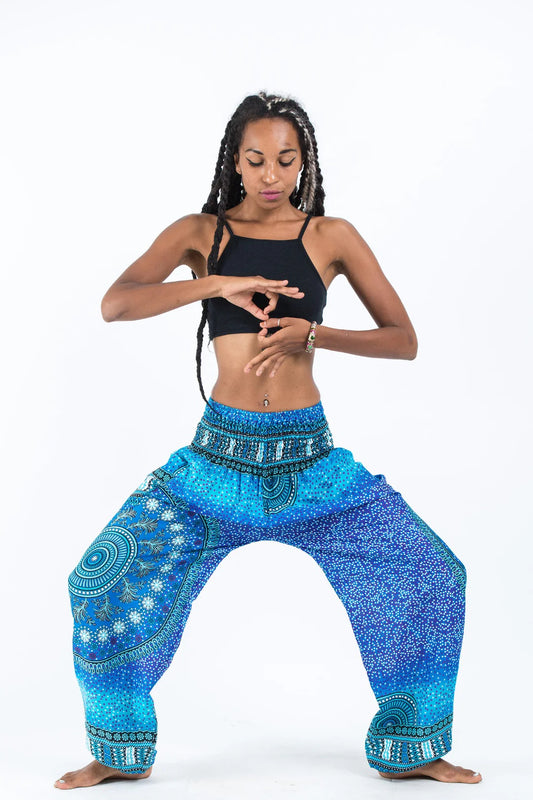 Tribal Chakras Women's Harem Pants in Blue, Thailand