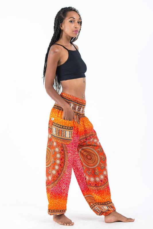Tribal Chakras Women's Harem Pants in Orange, Thailand