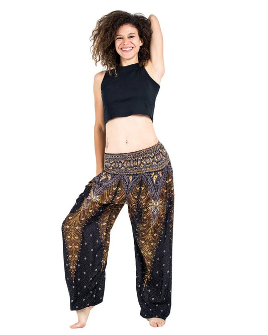 Peacock Feathers in Black / Unisex Harem Pants, Thailand