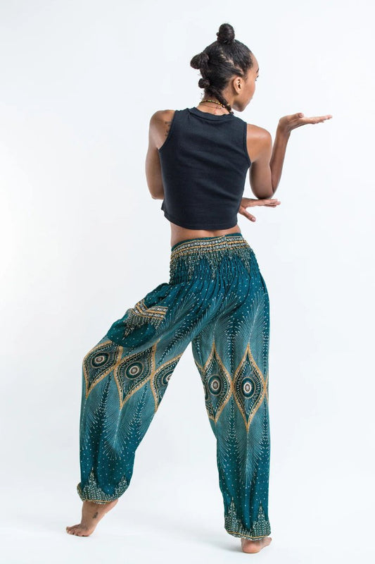 Diamond Turquoise Peacock Unisex Harem Pants, Thailand