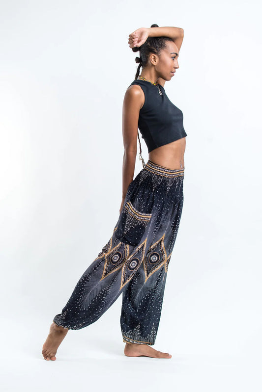 Diamond Black Peacock Unisex Harem Pants, Thailand