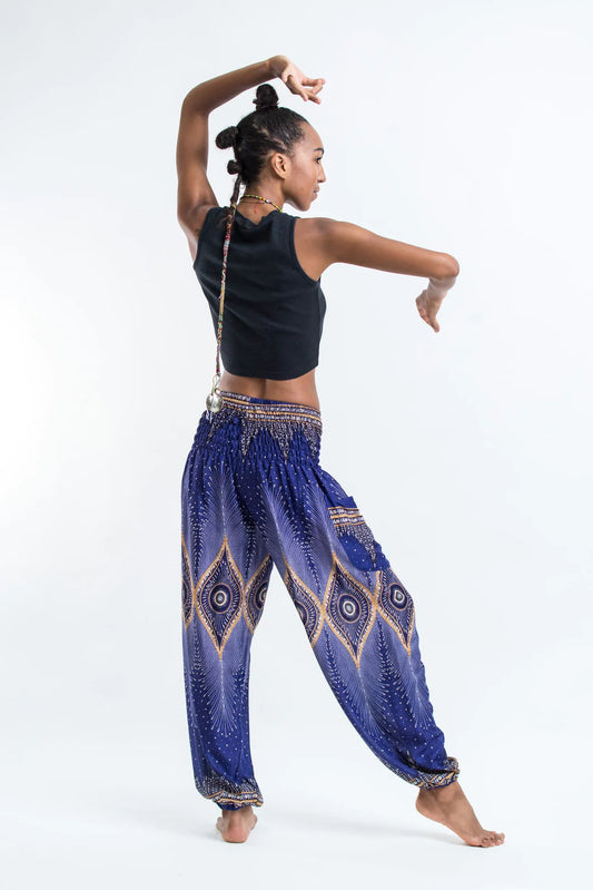 Diamond Blue Peacock Unisex Harem Pants, Thailand