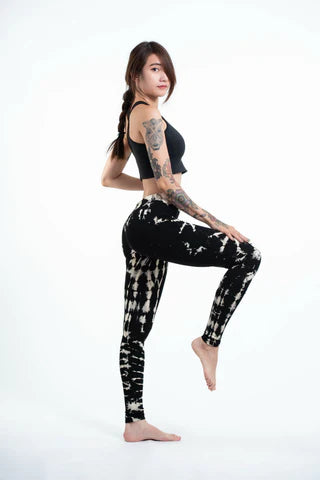 Women's Tie Dye Yoga Leggings - Black and White, Thailand