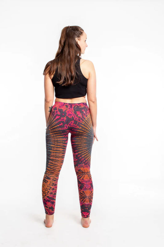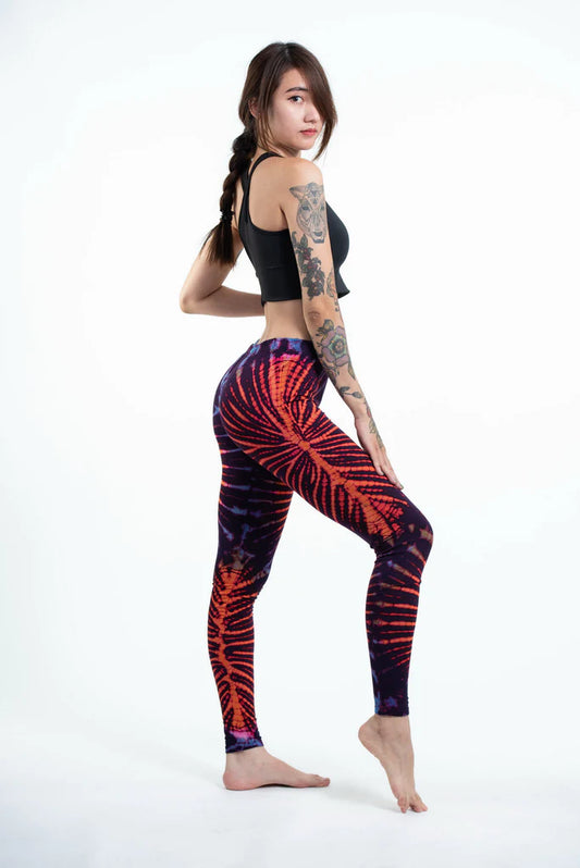 Women's Tie Dye Yoga Leggings - Purple and Orange, Thailand