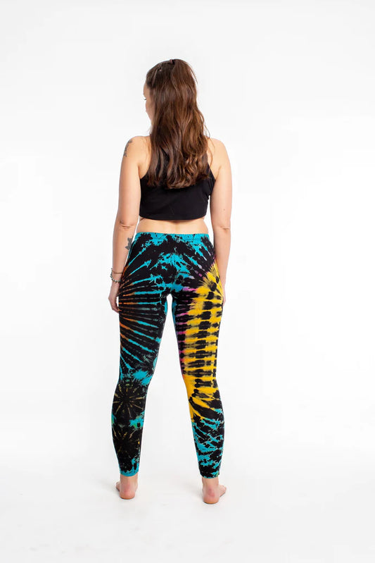 Women's Tie Dye Yoga Leggings - Festival Black, Thailand