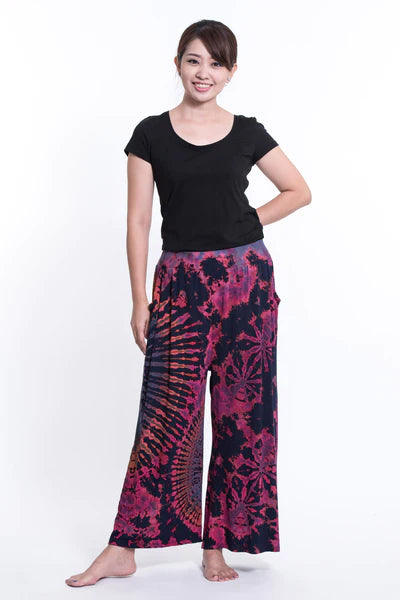 Women's Tie Dye Cotton Wide Leg Palazzo Harem Pants, Thailand
