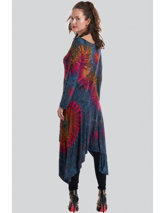 Long Sleeves Tie-Dye High-Low Dress, Thailand