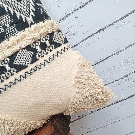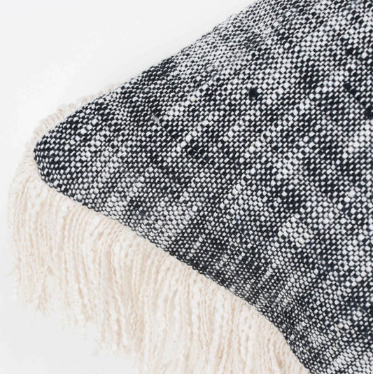 Hand Tufted Texture Boho - Black Fringe - Pillow Cover, India