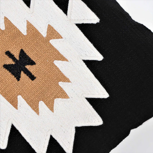 Hand Tufted Texture Boho - Black And Ivory - Pillow Cover, India