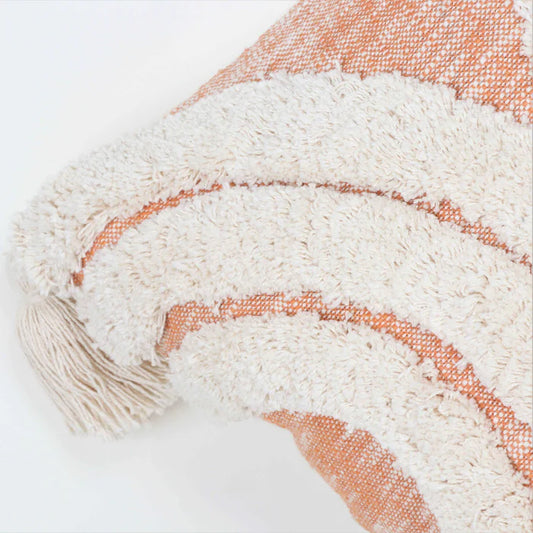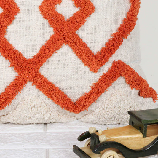 Hand Tufted Texture Boho - Ivory and Orange - Pillow Cover, India