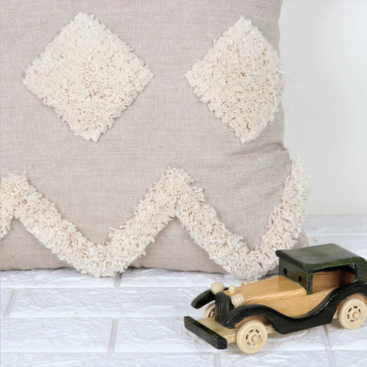 Hand Tufted Texture Boho - Beige and Ivory - Pillow Cover, India