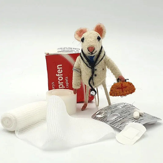Handcrafted Pretty Blue Felt Mouse with Flower, Nepal