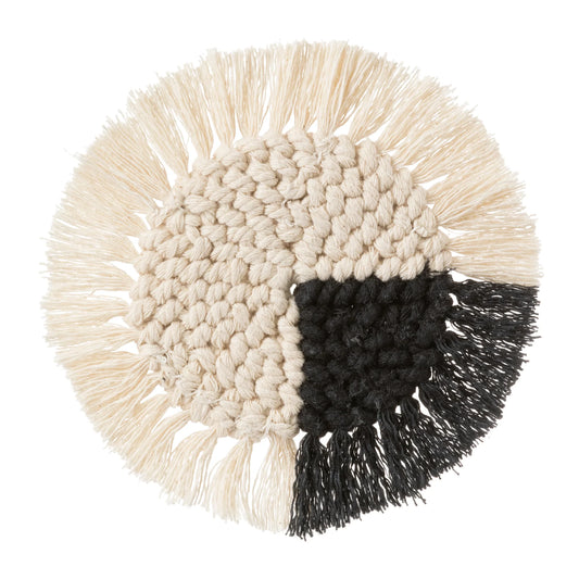 Macrame Coasters in Charcoal with Fringe, SET OF 4, India