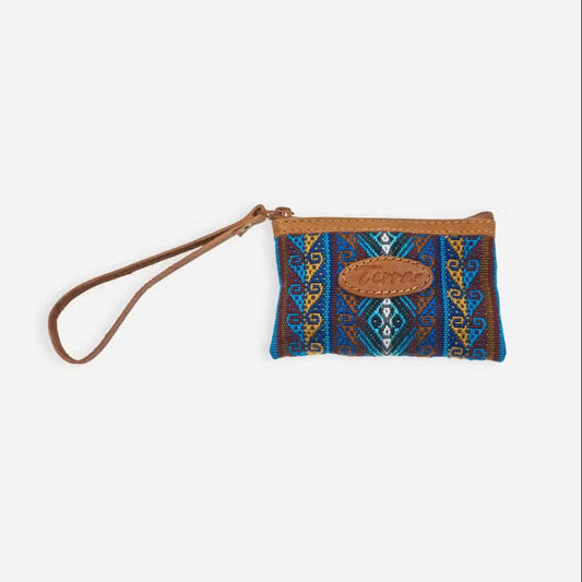 Genuine Brown Leather Wallet Aguayo ( Peruvian fabric)
