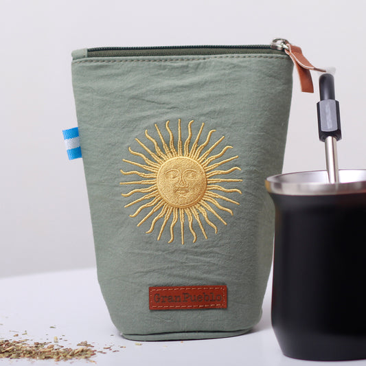 Sun of May Yerba Mate Bag – Handmade, Waterproof, Leather Detail, Yerbero, Argentina
